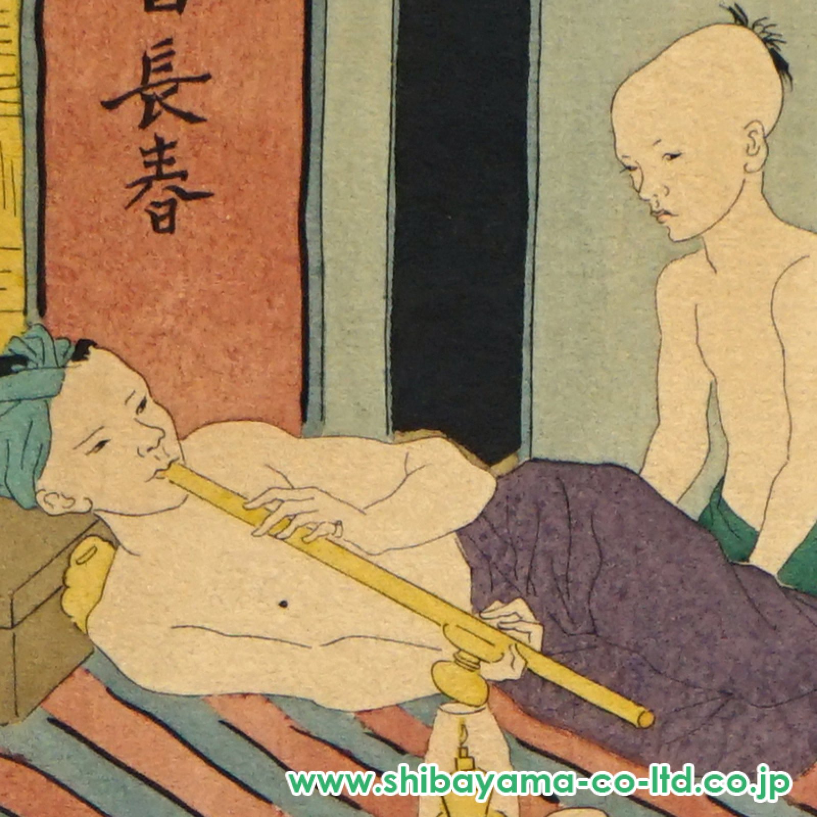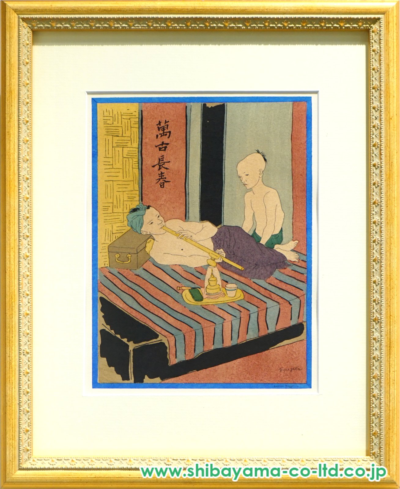 フランスの作家Jules Boissièreの『中毒に就て』は、中国とベトナムにおける阿片中毒について書かれた見聞記で、藤田嗣治が水彩画16点の挿絵を描いた作品である。本作品は、その藤田嗣治が寄せた挿絵をもとに制作されたリトグラフである。