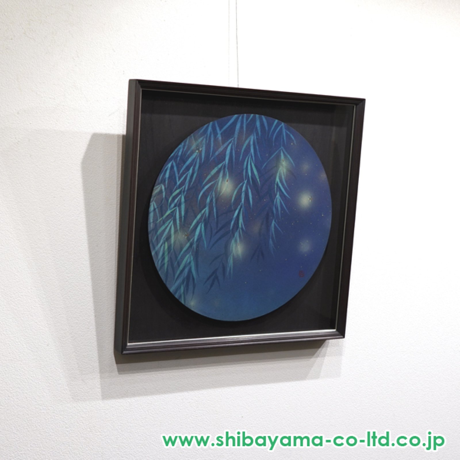 しなやかに枝を垂らす柳の闇の奥に、点のように浮かび、また消えていく蛍の光は、夜の静けさの中にかすかな生命の気配をもたらしています。人工的な光ではなく、自然が生み出す儚い明かりである蛍は、一瞬の輝きと時間の移ろいを象徴し、見る者の記憶や郷愁を静かに呼び起こします。名古屋剛志は、柳の柔らかな輪郭と蛍の淡い光を重ねることで、闇を否定せず、その中にそっと灯る美しさを描き出しています。