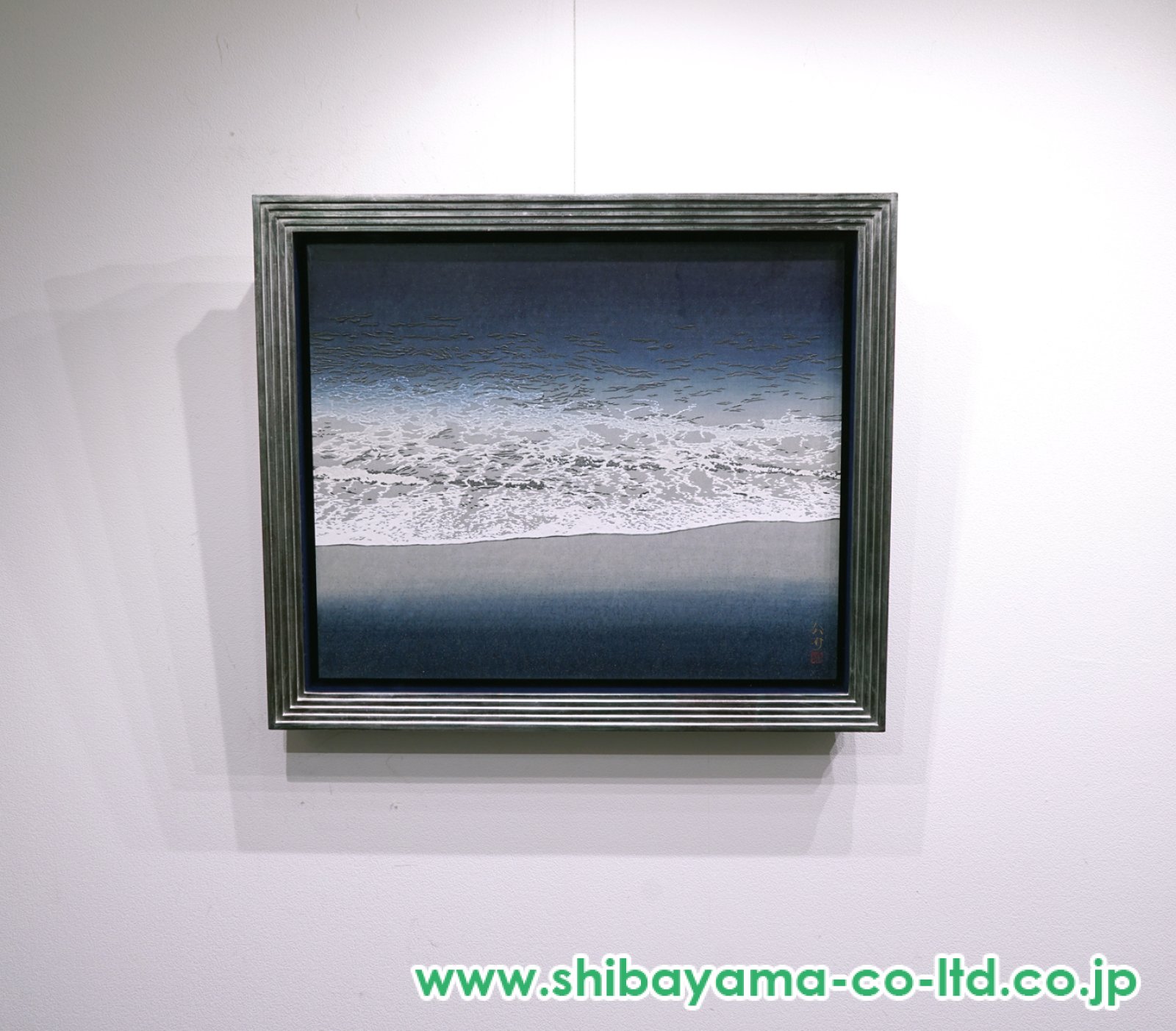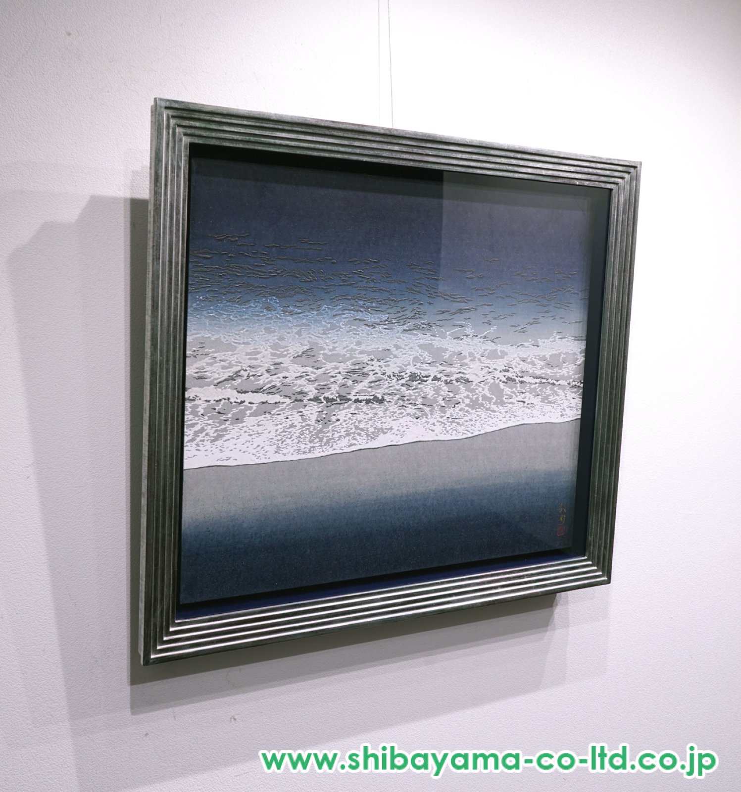 狩俣公介「潮騒」は、海辺に寄せては返す波の気配と、そこに宿る自然のリズムを主題とした作品である。画面には具体的な情景描写よりも、海と空、光と水が織りなす感覚的な印象が重ね合わされ、自然そのものの呼吸を感じさせる構成が取られている。 色彩は抑制されつつも豊かな階調を持ち、波の動きや湿った空気感が、静かな緊張を伴って表現されている。筆致には勢いと抑制が共存し、音としては聞こえないはずの「潮騒」が、視覚を通して想起される点が印象的である。 狩俣公介は、自然の風景を単なる再現としてではなく、身体感覚や記憶と結びついた心象として描き出す作家であり、本作「潮騒」もまた、自然と人との距離を静かに問いかける作品といえる。見る者それぞれの記憶や感情に寄り添い、深い余韻を残す一作である。