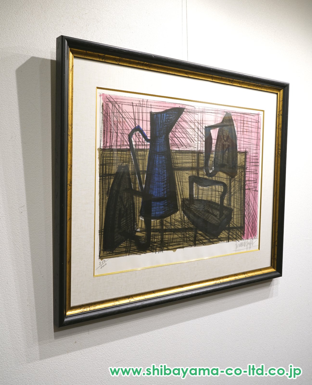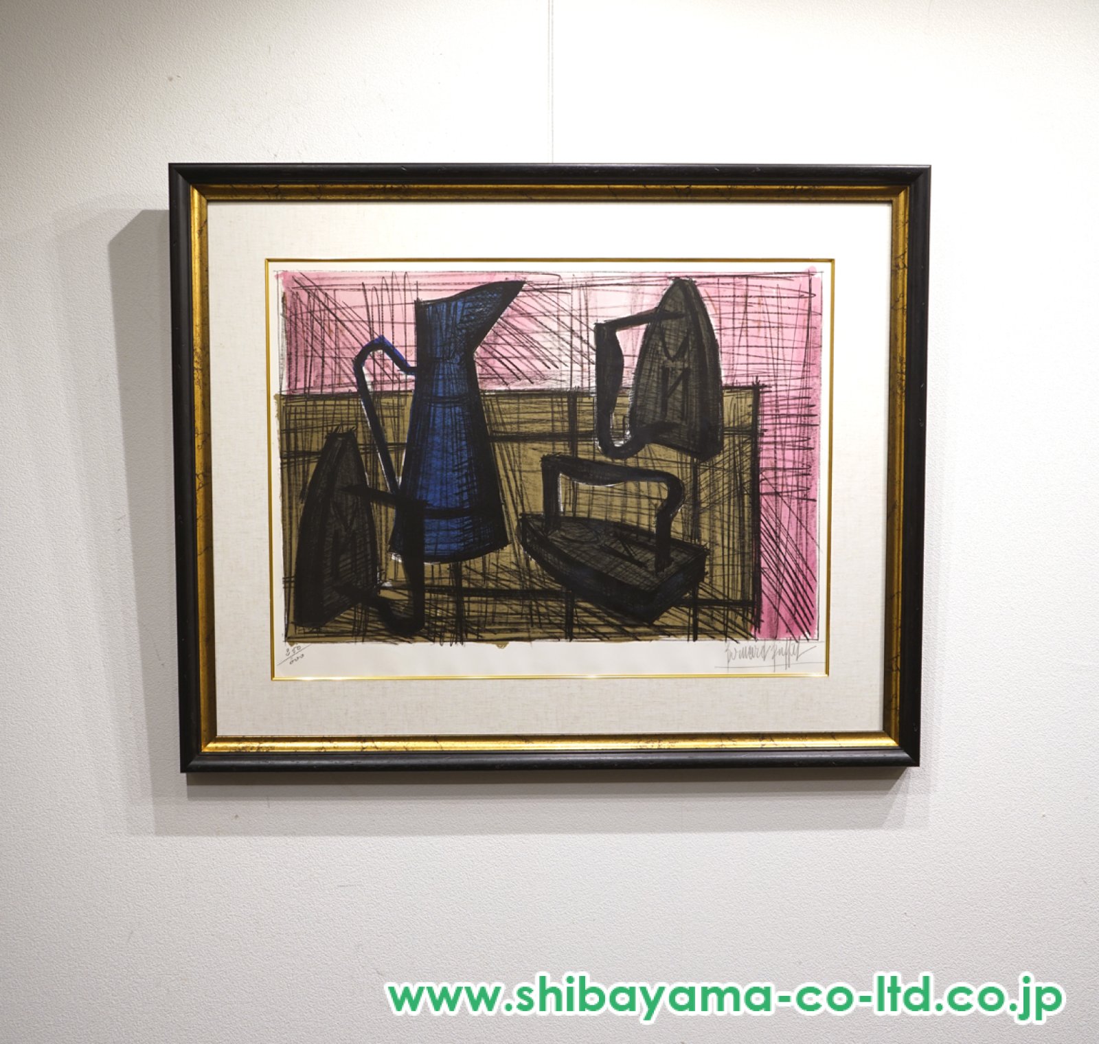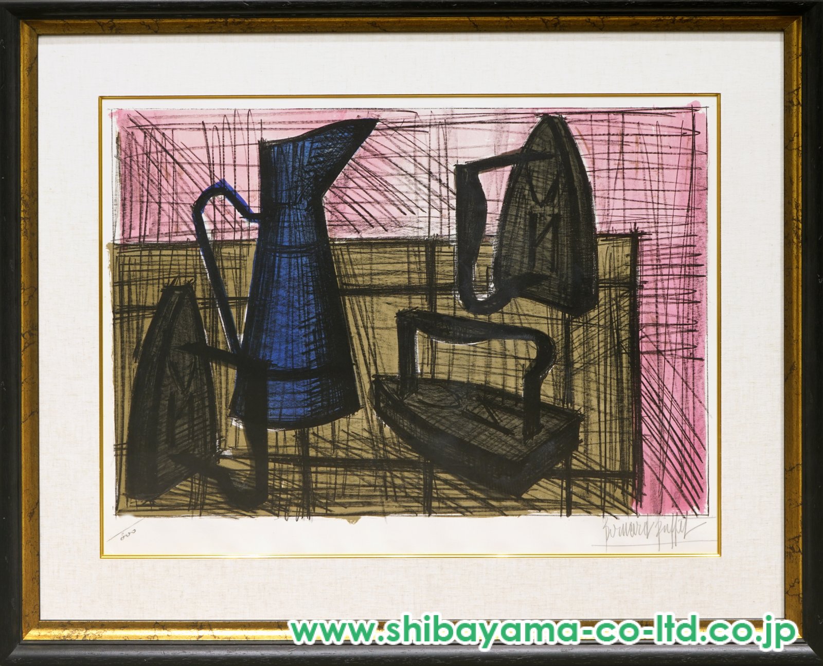 ベルナール・ビュッフェは、鋭利な線と抑制された色彩によって、戦後フランス美術を代表する独自の世界を築いた画家である。本作「アイロン(LES DERS À REPASSER)No.13」は、日常的な道具を主題としながら、ビュッフェ特有の緊張感と孤独感を端的に示した作品である。 画面に描かれたアイロンは、装飾性を排した簡潔な構成の中で、硬質な輪郭線によって強調され、無機質でありながら強い存在感を放っている。背景との対比は明確で、形態は歪みを帯びつつも秩序を保ち、日用品が象徴的なモチーフへと昇華されている点にビュッフェ芸術の本質がうかがえる。 ビュッフェは静物を通して、物質の重さや人間の内面を投影する表現を追求してきたが、本作もまた、静けさの中に緊張と不安を孕んだ独特の詩情を宿している。日常と芸術の境界を鋭く突きつける、完成度の高い一作といえるだろう。